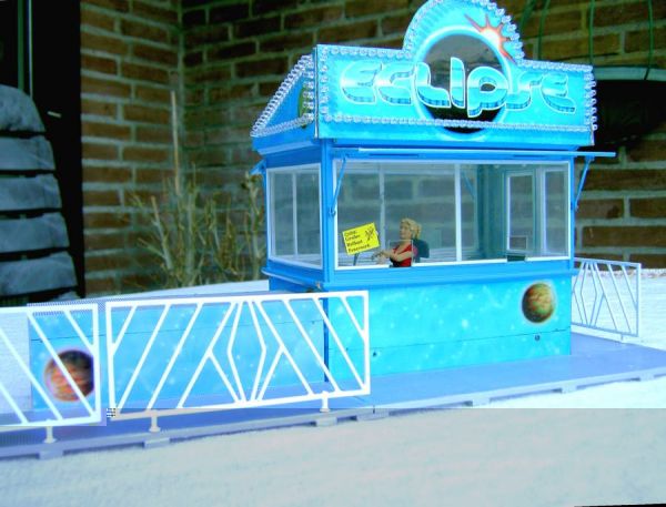 Meine Modelle sind alle 1:20 gebaut. Die Ausstellungsfläsche ist zur Zeit 21 Quatratmeter. Es brennen über 52000 LEDs in allen Farben. Die Bilder sind unter http://www.Rockyskirmes.de zufinden. Das neue Modell ist die ECLIPSE ein Rundfahrgeschäft welches mit 90 Stundenkilometer sich (in der Höhe 45 Meter) dreht. Auf meinem Bild ist die Gondel am Ende des Modells noch nicht angebaut. In der Gondel sitzen 8 Personen. Die Gondel dreht sich auch noch mit Überschlag im Kreis.Das alles wisd an meinem Modell realisiert. In ca 5 Wochen soll das Modell fertig sein. An diesem Modell nehme ich nur ultrahelle LEDs. Zurzeit baue ich die Steuerung der 8 Kanalsteuerung. Eine 4 und 3 Kanalsteurung ist bereits in Betrieb. Die LEDs werden vorwärts, rückwärts, der Rreihe nach angehen und mit 2 facher Geschwindkeit laufen.Wenn die Steuerung fertig ist werde ich mal ein Bild davon posten. Ein User wollte wissen was ein Modell kostet. Aber über Geld sollte man nicht sprechen, doch billig sind die Modelle nicht.