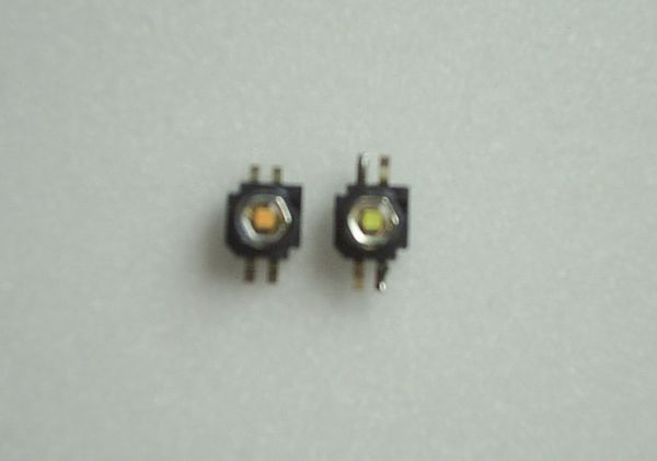 Hier mal ein vergleichsbild der K2 Warmweiß links und der K2 Weiß rechts. Hier schon gut zu sehen das die Phosphor schicht bei der Warmweißen leicht ins Braun/Orangene geht, und bei der Weißen normal Gelblich.