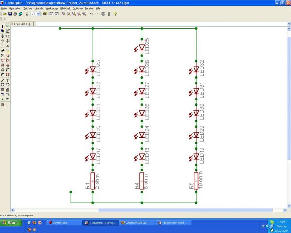 Wenn Du jetzt noch schreibst, welche LED´s in welcher Reihe sein sollen, können wir auch nachrechnen. :wink: