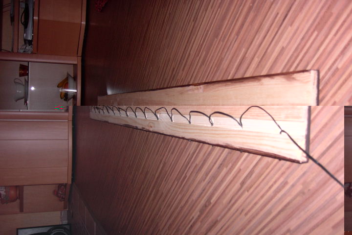 Also,gaanz einfach.Das Brett schön rechtwinklig unter einer Ständerbohrmaschiene fixieren und dannn alle 10cm ein Loch bohren. :wink: