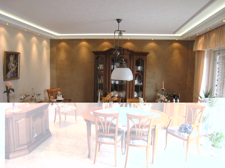 Das Wohn und Esszimmer ist getrennt schalt und dimmbar.