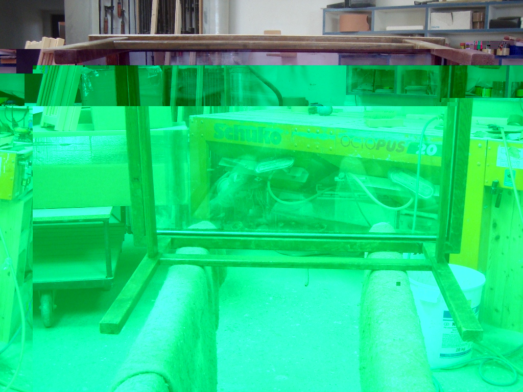 Tisch im Urzustand von unten.