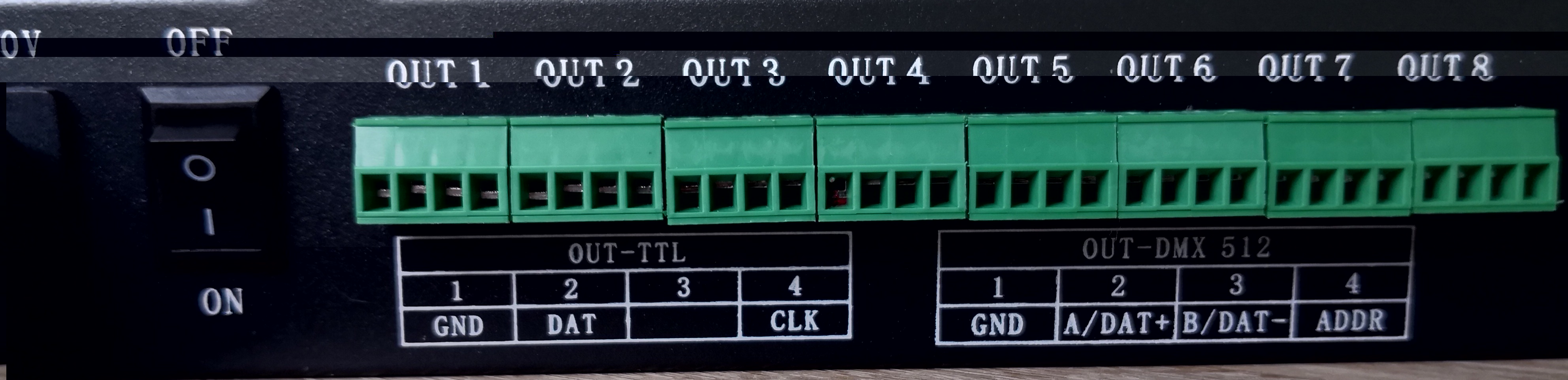 1x DO/DI (beim mir Grün) an Out2 (TTL) Steckplatz 2 "DAT"