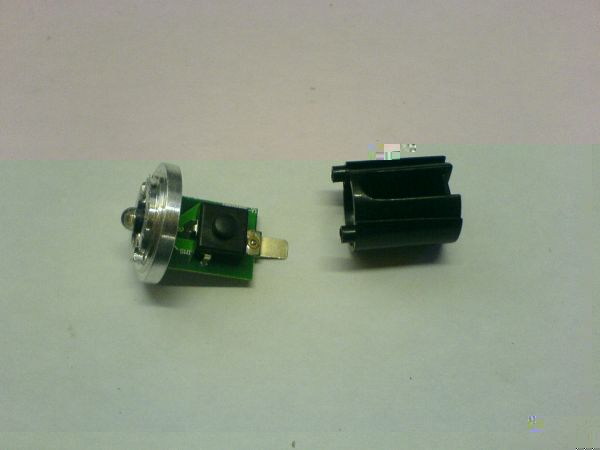 Da die anderen Teile noch fehlten habe ich ihn testweise mal in die Taschenlampe eingebaut.