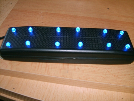 Ich hätte die 470 ohm Widerstände zu dritt parelle geschaltet und dann immer vo 3 Leds in Reihe gepackt verbauchste weniger Strom sonst ganz nice..