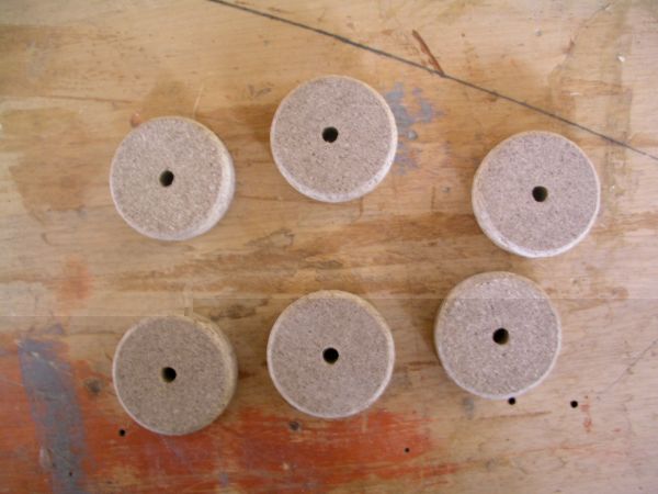 Hier die Holzkreise die in die Löcher kommen: (Kreise werden später noch lackiert)