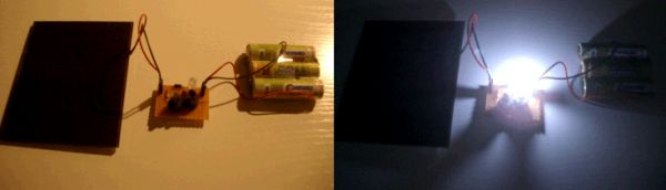 Ein Testaufbau mit einer hyperhellen weißen LED (16000mcd 20° 5mm) ist heller als alle Solarlampen, die ich bisher gesehen habe. 8)