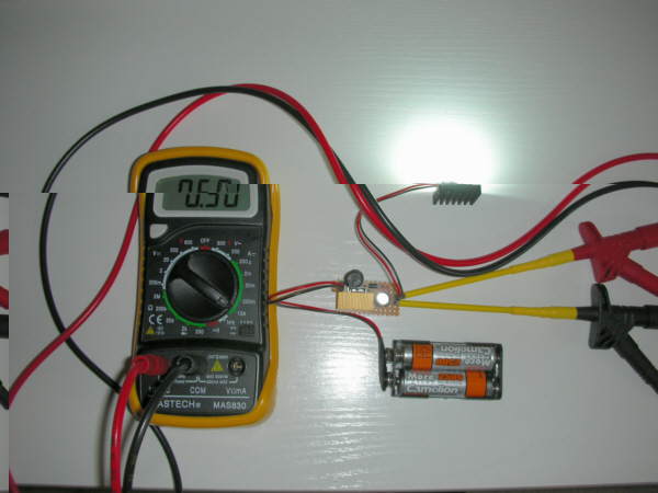 Wie du schon festgestellt hast, ist die Helligkeit nicht wirklich berauschend, sie ist sogar schwächer als die einer einfachen 3 Transistorenschaltung, die auch mit nur einem 1,2V Akku betrieben wird.