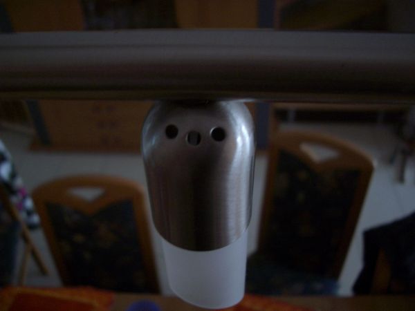 Nach oben hin hat jede Lampenfassung 6 Löcher mit ca. 3 mm im Durchmesser.