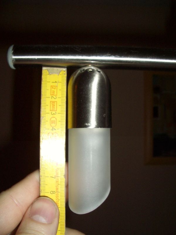 OK, war bei Halogen auch nicht anders zu erwarten.. Alles andere würde höchstwahrscheinlich wegschmelzen... Für die Halterungen müsstest du dir dann auch noch was überlegen - vielleicht zwei relativ große Kugeln mit einer dazwischen gespannten Druckfeder einarbeiten. Die Feder müsste so stark sein, dass das Glas sicher hält, aber auch nicht so stark, dass du Gewalt anwenden musst.