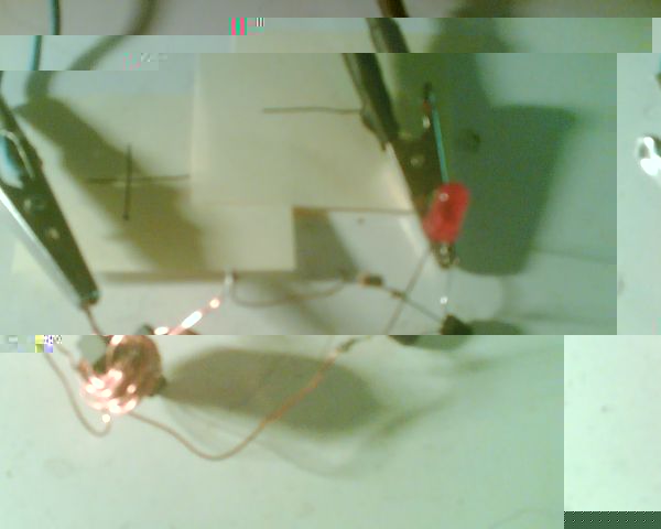 also dich schaltung will schon etwas: wenn ich die basis mit der spule verbind und trenne geht die led mal ganz kurz an bei 1,3V ich tippe mal auf selbst induktion????
