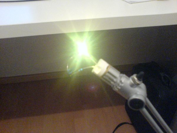Hier mal die ersten Versuche mit einer 6V DC Netzteil und einer warmweißen LEDs, die hatte ich gerade zur Hand.