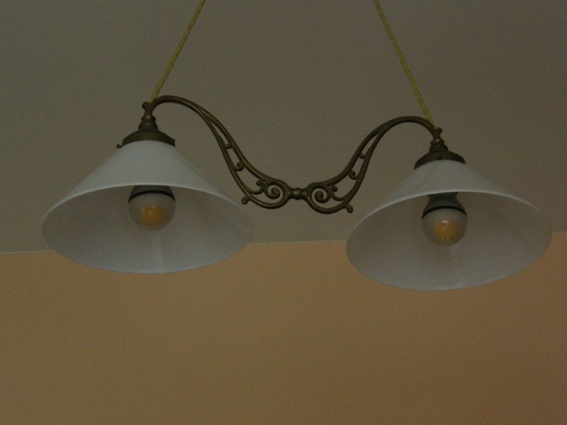 Da wir nicht nur die erste Etage neu gestaltet haben, sondern auch unsere Küche mit der Eßecke haben wir uns gesagt, wenn das klassische Glühobst demnächst durch die nicht ernst zunehmenden Amtshengste aus Brüssel nicht mehr erlaubt sind, werden wir mal die neue lichtspendende Generation von Retrofits testen. Eine EL sieht in einer Lampe aus dem Anfang des vorherigen Jahrhunderts mega daneben aus.