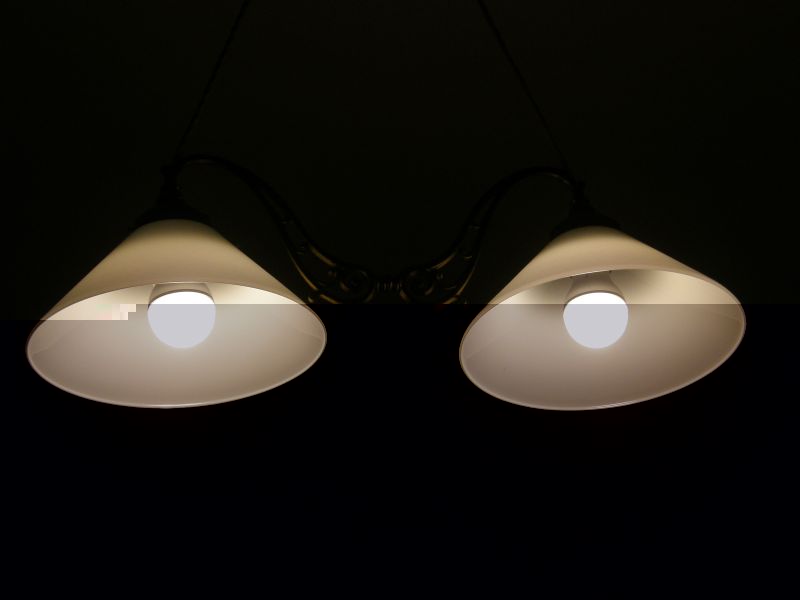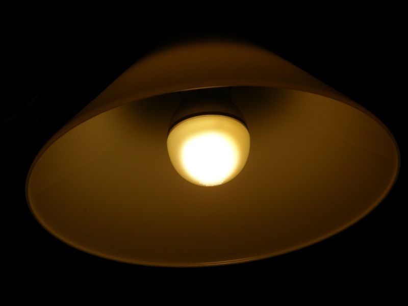 Nun die neuen Retros hinein und 230V~ eingeblasen. Also.... direkt hineinschauen schmerzhafter als bei der konventionellen Technik. Die Zeitungen auf dem Tisch refektieren so stark, dass man fast geneigt ist, eine Sonnenbrille aufzusetzen. Erst recht, wenn man Hochglanzprospekte für den Urlaub auf dem Tisch liegen hat. Dafür war / ist es aber außerhalb dieses Bereiches - wie von mir erwartet - deutlich dunkler.