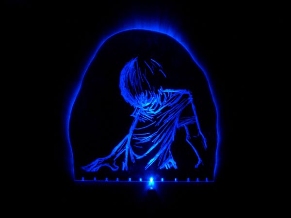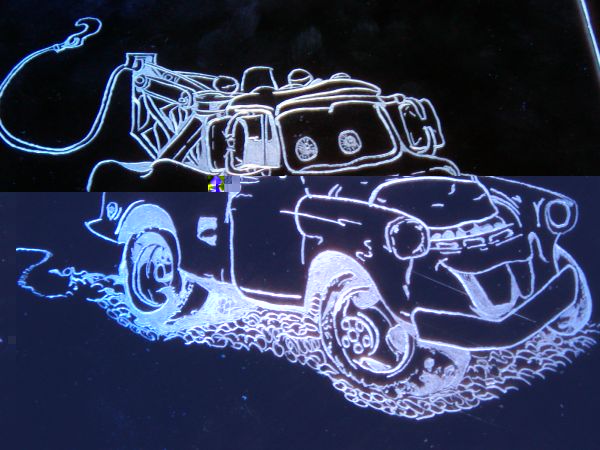 Hier noch mein Lieblingsbild,eine Gravur auf Glass Mit roten LED`s beleuchtet.[