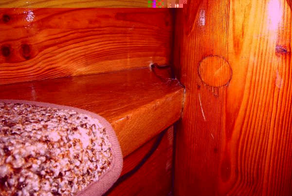 Damit man die Verkabelung nicht sihet, ist hier die extra angefertigte Holz-Abdeckung für die Stufe, die die Kabel versteckt angebracht worden.