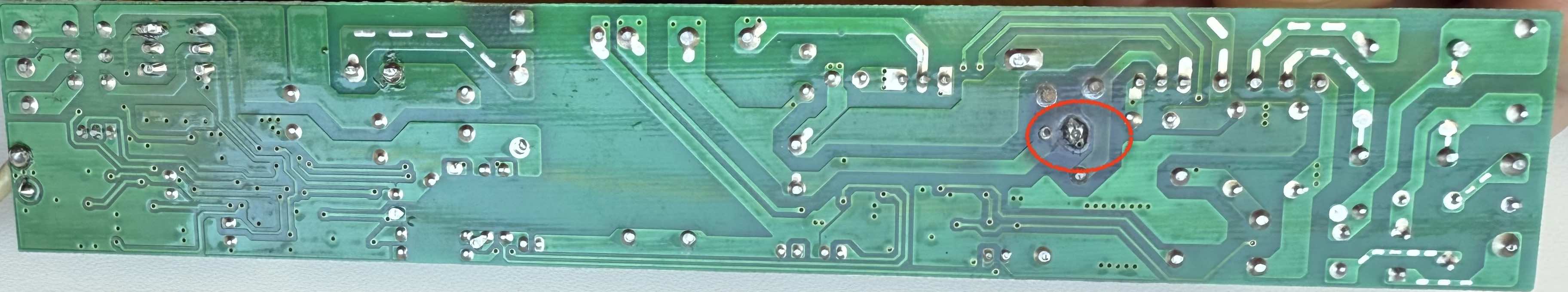 Das zerstörte Bauteil im LED Driver ist nicht mehr identifizierbar, sonst wäre es naheliegend, erstmal zu versuchen, das zu ersetzen... Ich habe auch keine Stromversorgung mit auch nur ansatzweise ähnlichen Daten gefunden, und versuche herauszufinden, ob irgendwas noch rettbar ist - allerdings fehlt mir das Knowhow für den Umgang mit LEDs, auch wenn ich ein Multimeter bedienen und einen Lötkolben richtig rum halten kann...