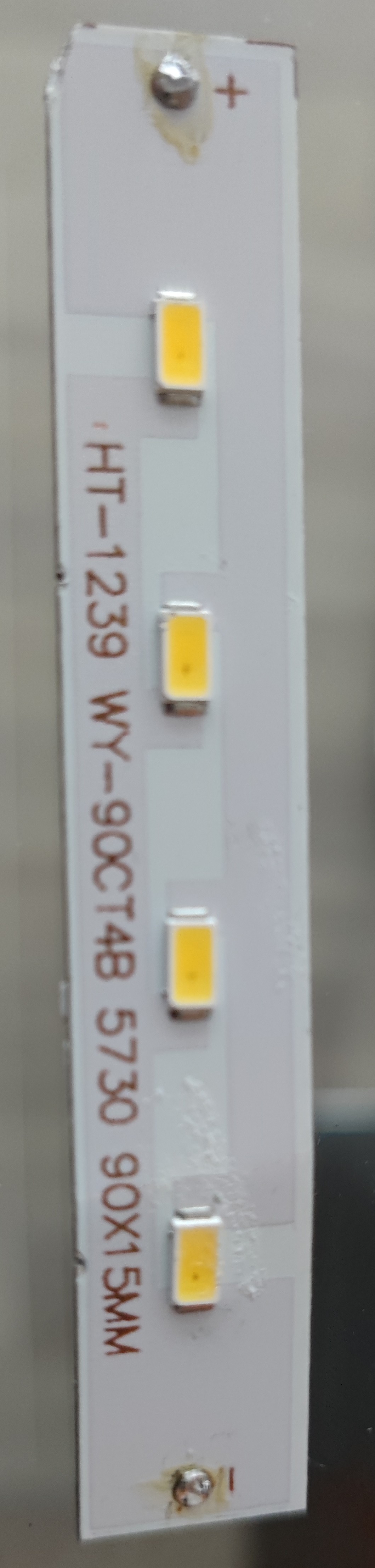 Ich vermute da sind alle 4 defekt. Mein Plan war zunächst einen Streifen zu besorgen (12V) mit exakt den selben LED wie auf dem defekten Teil(5730). Diesen dann mal reinlöten. Was ich so preiswert gefunden habe hätte halt nur 3 LED je schneidbarem Bereich, wäre aber nicht schlimm. Hauptsache die Lücke wird einigermaßen gefüllt. Könnte das funktionieren? Ansonsten müsste ich versuchen die LEDs zu tauschen, die Platine scheint aber einen feinen Riss zu haben, keine Ahnung ob die überhaupt noch funktioniert oder ob man das "flicken" kann. Ich hänge leider sehr an der schönen Lampe, sonst hätte ich mir einfach eine neue gekauft 😔
