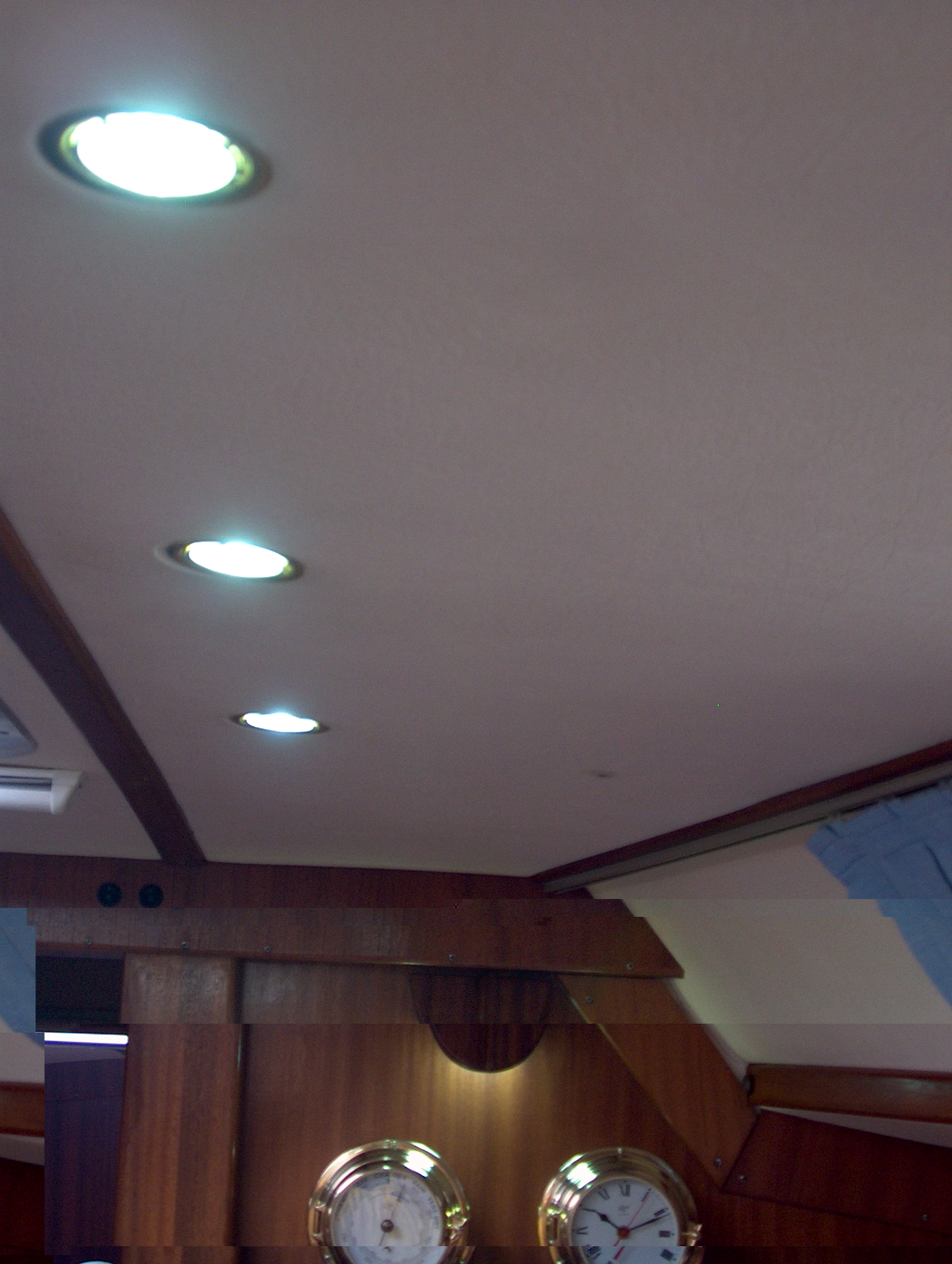 Andererseits wollte ich aber nicht noch eine Saison warten und warmes Bier trinken. Allein im Salonbereich habe ich 11 Lichtquellen umgerüstet, jede von 10 Watt Halogen auf 1,2 bis 1,3 Watt (mit Verlusten der KSQ) und es ist bedeutend heller als mit Halogen. Die vier Kammern und eine der Toiletten sind ebenfalls umgerüstet. Was noch fehlt ist eine Toilette und eine Leuchte der Pantry (da sind noch 8 Watt Leuchtstoffröhren drin.